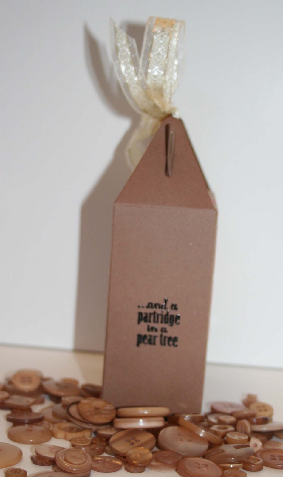 I decided to make the Gable Box - Tall! I had it cut in kraft. The stamps are from Unity. The EP is Stampendous; Red Metallic. It doesn't really seem red to me, more like hot pink LOL!Here is the side view. That EP is Ranger in Black. The stamp is also Unity. The ribbon is just from my stash. I did use a little Killer White Tear-able Tape to close the bottom.